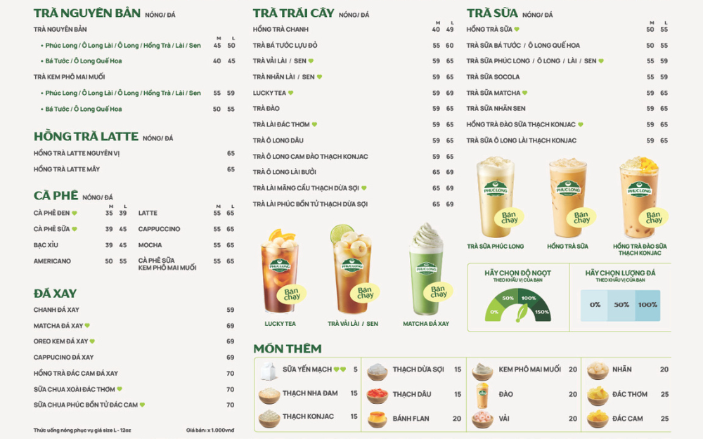 Đừng quên "nâng cấp" ly nước của bạn với danh sách các món thêm đa dạng và hấp dẫn chỉ có tại Phúc Long nhé!