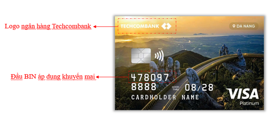 Thẻ TECHCOMBANK bao gồm: Thẻ Thanh toán quốc tế Visa (đầu BIN 478097, 401148, 422150, 422149, 489044, 457451); Thẻ tín dụng Techcombank Visa (đầu BIN 403280, 422075, 422076, 457353, 483931); Thẻ tín dụng Techcombank MasterCard (đầu BIN 510164); Thẻ thanh toán Techcombank Napas (đầu BIN 970407).
