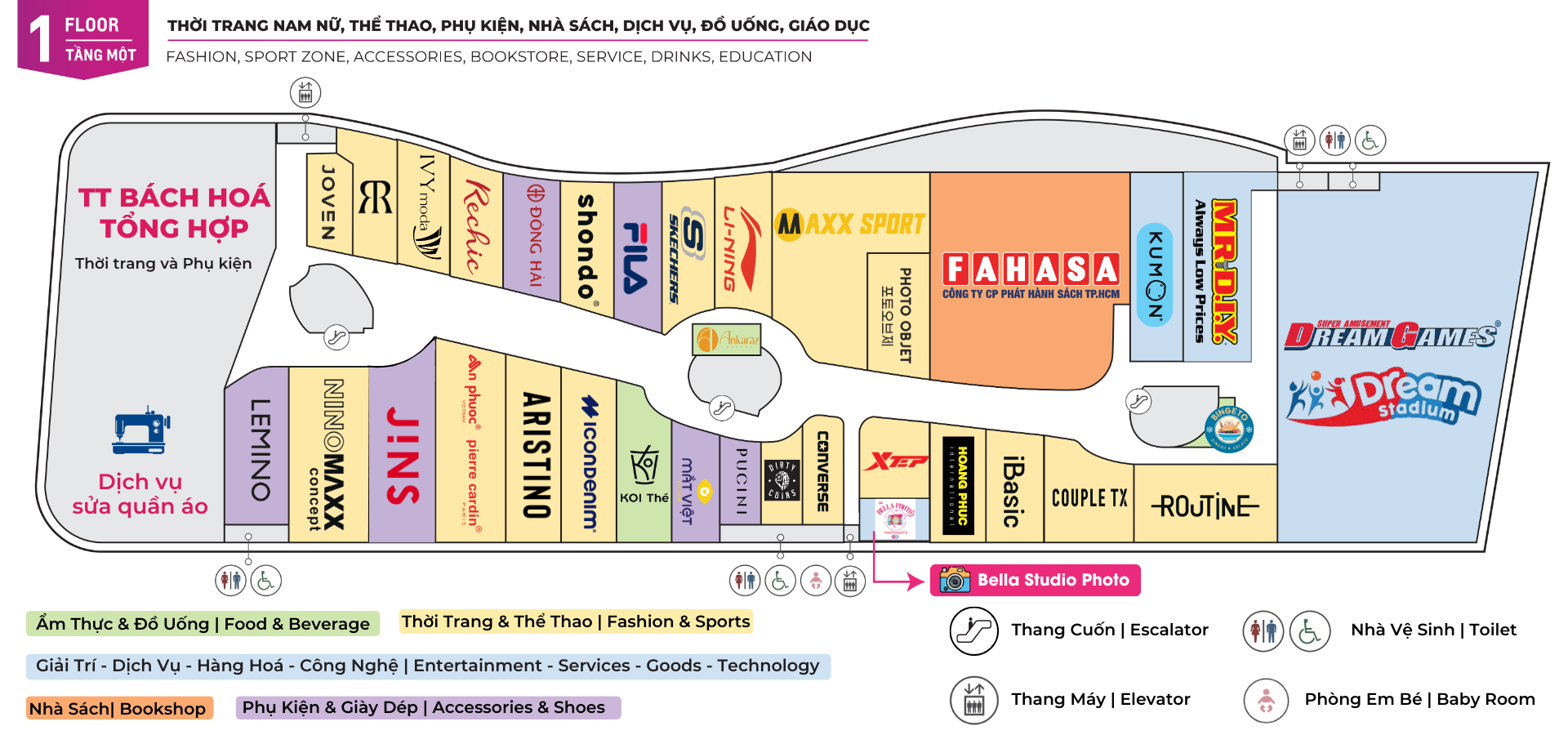 1.2 TẦNG 1: THỜI TRANG NAM NỮ, THỂ THAO, PHỤ KIỆN, NHÀ SÁCH, DỊCH VỤ, ĐỒ UỐNG, GIÁO DỤC