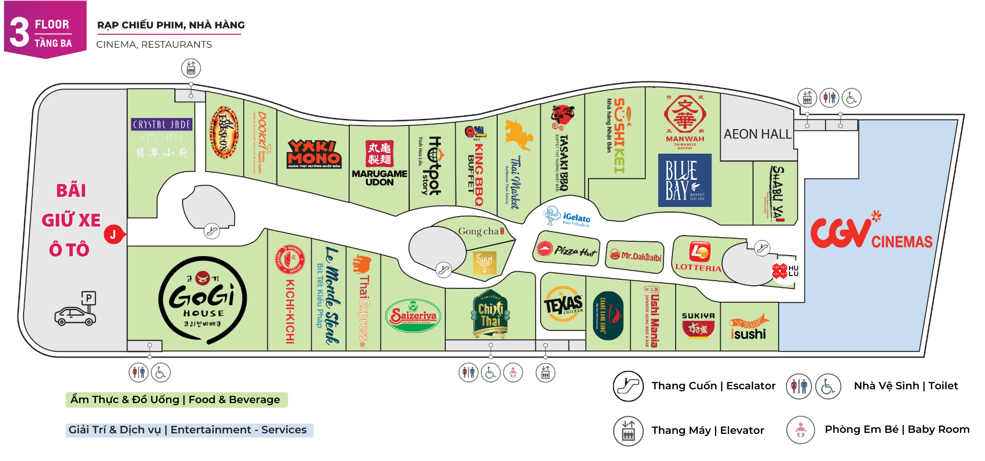 AEON MALL Bình Tân được chia thành 4 tầng với các khu vực khác nhau để bạn dễ dàng trải nghiệm. Cấu trúc cấu trúc của các tầng như sau: