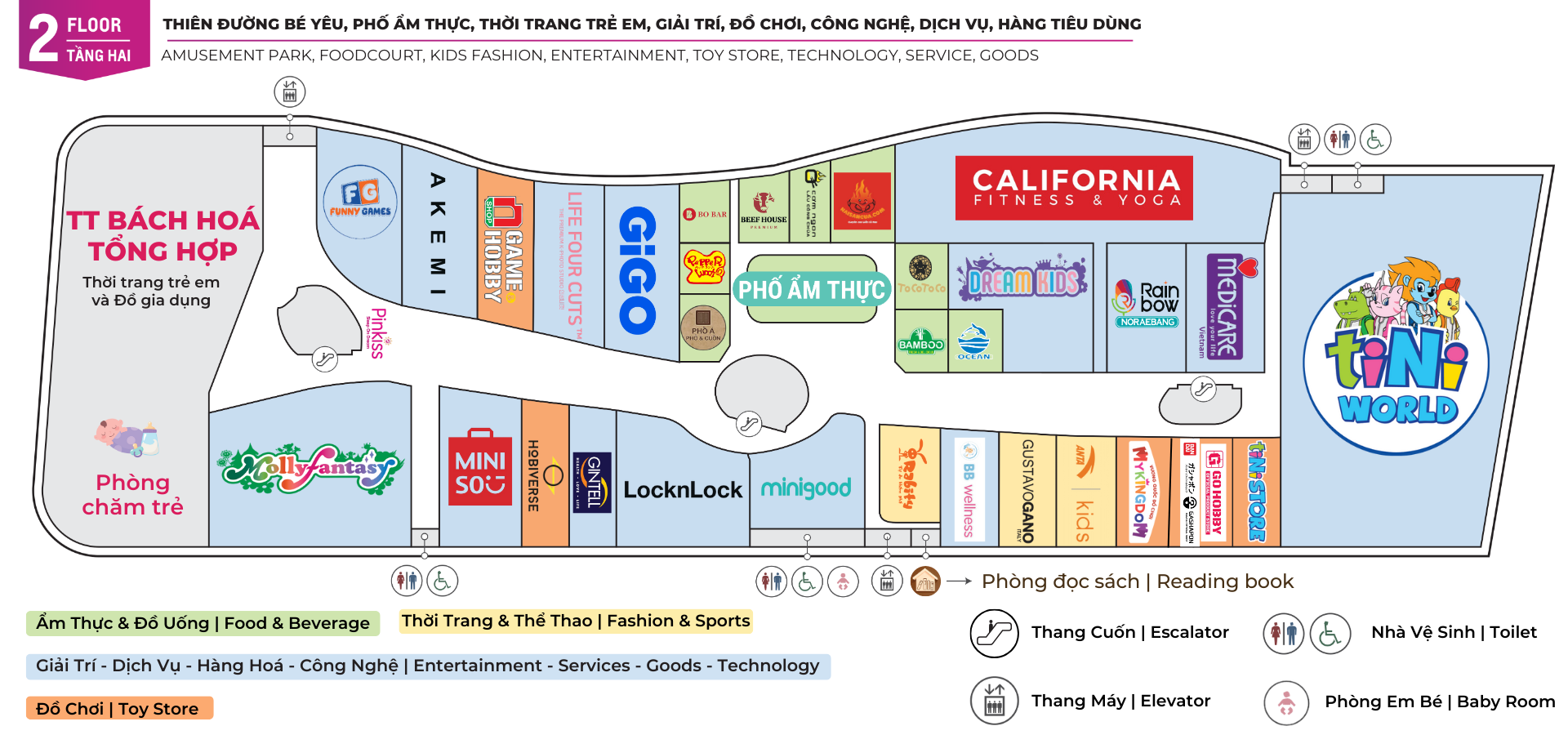 1.3 TẦNG 2: THIÊN ĐƯỜNG BÉ YÊU, PHỐ ẨM THỰC, THỜI TRANG TRẺ EM, GIẢI TRÍ, ĐỒ CHƠI, CÔNG VIỆC DỊCH VỤ, HÀNG TIÊU DÙNG